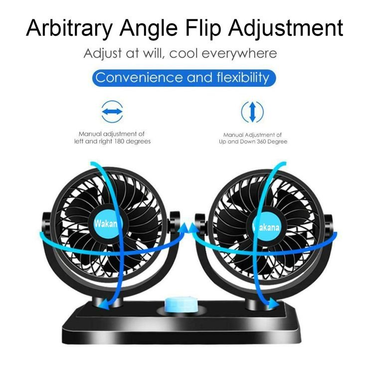 A double-headed fan used in cars refers to a portable fan with two adjustable heads designed to enhance air circulation within the vehicle. These fans are often used to provide additional comfort, especially in cars without air conditioning or for passengers in the rear seats. Here’s an overview of such fans: