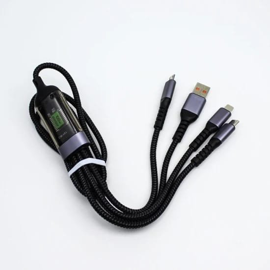 This three-in-one interface cable is compatible with all mobile phones and ensures fast charging, delivering 100W high power for instant recharging.