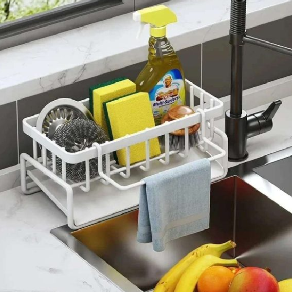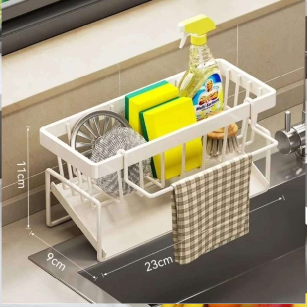 Elevate your kitchen organization with our Sink Caddy, complete with a Water Draining Tray and Multifunctional Sponge Detergent storage Rack. Made with a durable Carbon Steel and Plastic Tray, available in both elegant white and classic black. Measuring at a perfect 23*11*9cm, maximize your space and efficiency in style.